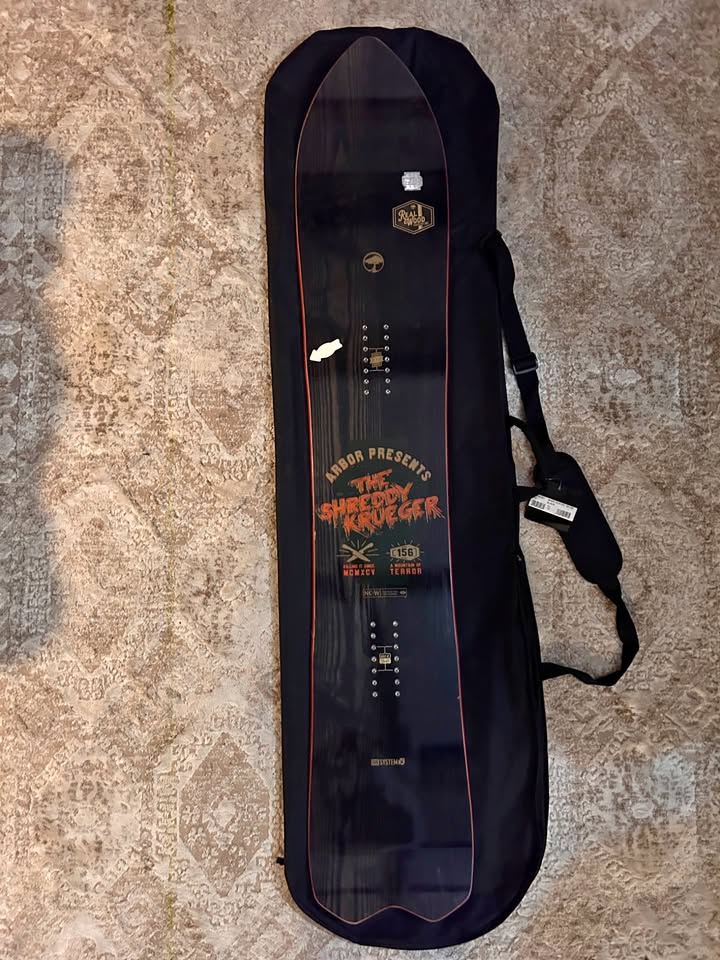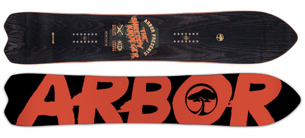 Rocker, grip tech, medium - hard stiffness - surfy floaty feeling on powder days