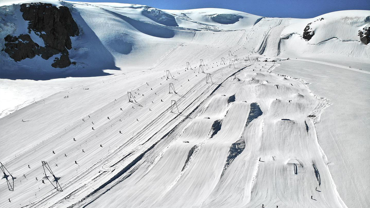 Το Zermatt snowpark λειτουργεί 300 ημέρες τον χρόνο! στον Theodul glacier στα 3250μ, ακόμη και το μεγαλύτερο διάστημα του καλοκαιριού! Έχει μήκος 1250μ και διαθέτει 6 lines για όλα τα επίπεδα, πλήθος κατασκευών και κάποιες χρονιές ακόμη και half pipe, που δεν αφήνουν αδιάφορους rookies ή pro riders! Είναι σχεδόν βέβαιο ότι θα δεις να προπονούνται μεγάλα ονόματα του freeski & snowboard, σε ένα από τα καλύτερα πάρκα στην Ευρώπη, με εξασφαλισμένη σχεδόν ετήσια λειτουργία και ποιότητα χιονιού λόγω υψομέτρου.